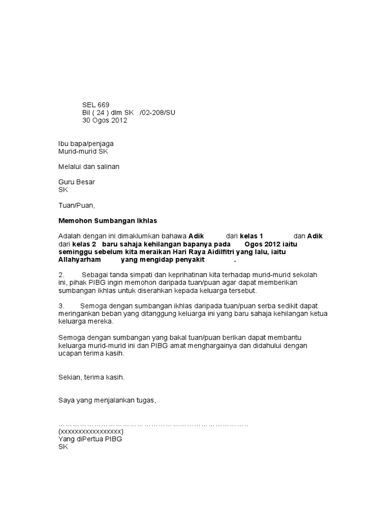 Surat Memohon Sumbangan Ikhlas - Kematian A via www.scribd.com